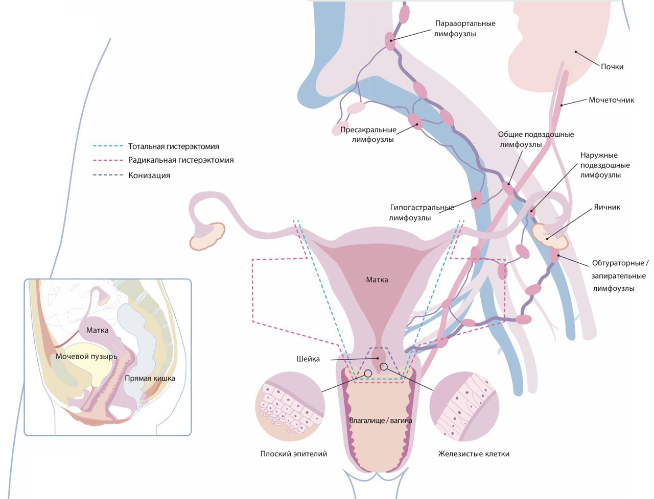 Вид операции определяется на основании оценки совокупности факторов и может быть разным: конизация, простая трахелэктомия или радикальная трахелэктомия.
