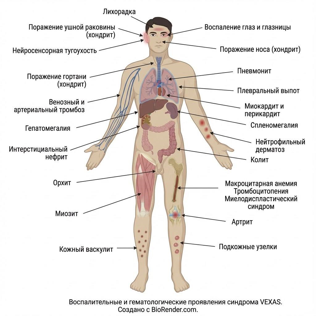 VEXAS - аббревиатура, основанная на ключевых особенностях синдрома: