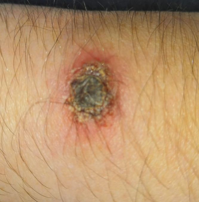 Клинические проявления заключаются в поражении кожи (нейтрофильный дерматоз, васкулит), хрящей, сосудов, легких, сердца, а также повышении температуры тела, развитии тромбозов, макроцитарной анемии, тромбоцитопении.