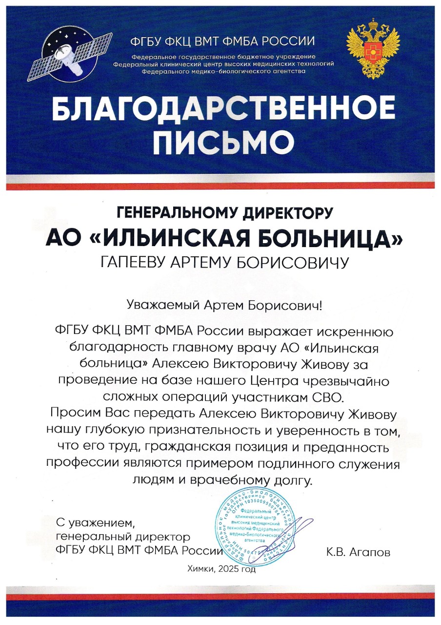 благодарность доктору Живову А. В. и всему коллективу Ильинской больницы.