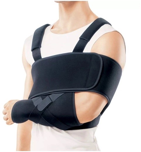 Когда становится понятно, что внутренние органы не повреждены, пациент стабилен и его жизни ничего не угрожает, необходимо принимать решение о тактике лечения перелома ключицы. Руку предварительно иммобилизируют приводящим ортезом, позволяющим уменьшить подвижность отломков кости и тем самым снизить болевые ощущения.